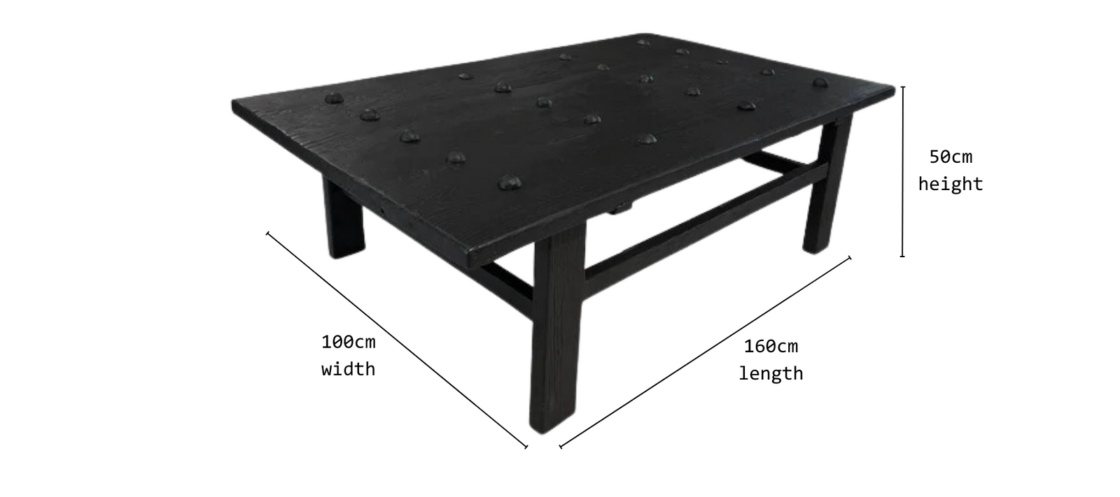 Beautify your home with this unique, recycled antique elm door coffee table! Crafted from reclaimed timber, it sports a sophisticated black painted finish, with rustic bolt detailing on the top.