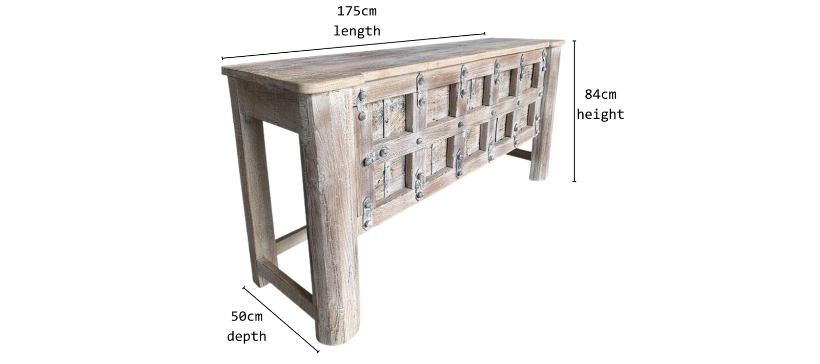 This one-of-a-kind, carved antique console is a breathtaking statement piece. Its distinctive whitewash and bleaching gives it an ageless, timeless charm that will add an elegant touch to any entryway, bedroom, or dining room.