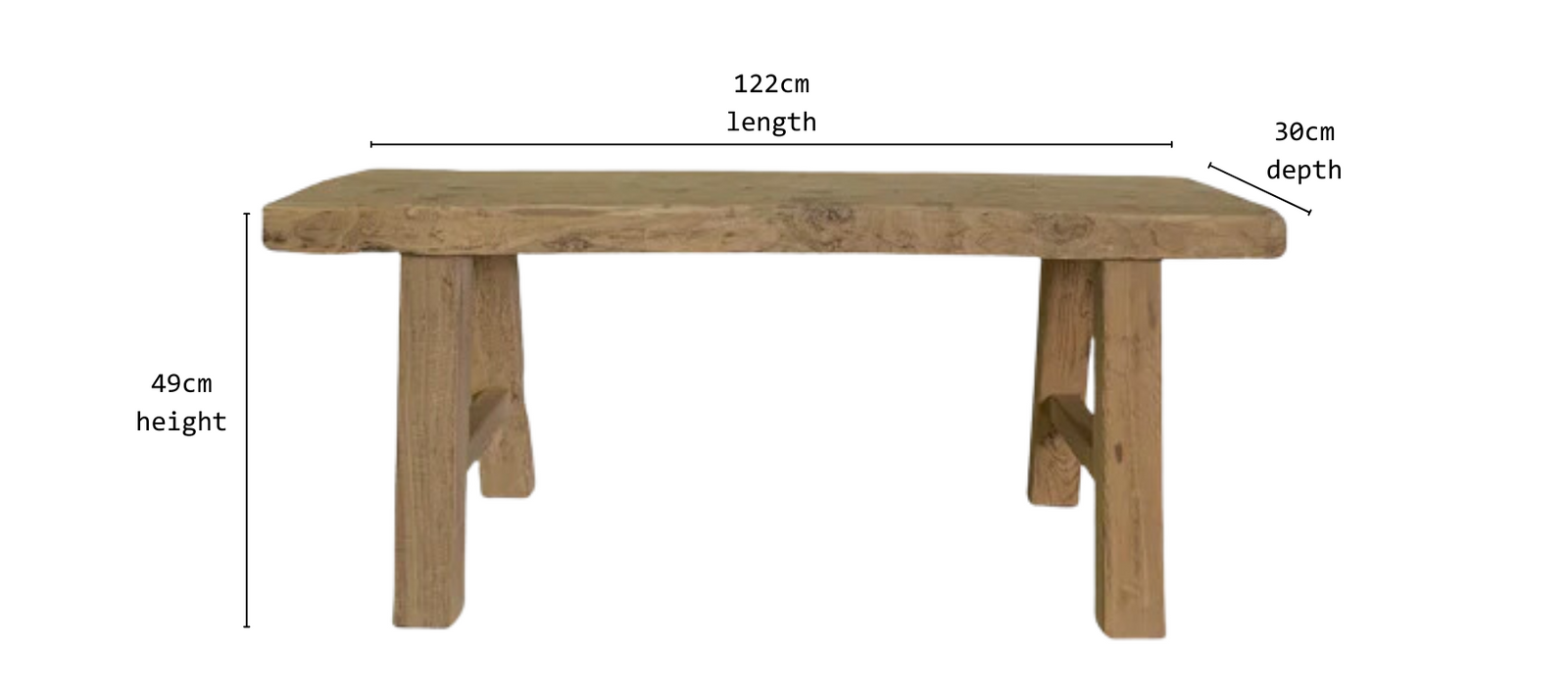 Our beautiful reclaimed elm bench seat small adds extra seating in dining areas and stylishly accents entryways. Perfect for the end of a bed or narrow hallway, this raw timber bench is an ideal touch of rustic charm.